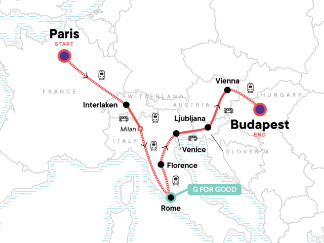 Your Big Night Out Moment: Budapest. Orientation walks in Paris, Interlaken, Rome, Venice, Vienna, and Budapest. All transport between destinations and to/from included activities.