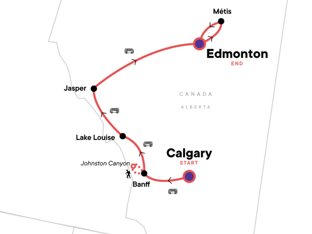 Your Welcome Moment: Meet Your CEO and Group. Calgary CEO-led Orientation Walk. Banff Exploration Tour. Winter Hike in Johnston Canyon. Sunshine Meadows Guided Snowshoeing. Winter Visit to Lake Louise. Peyto & Abraham Lake Winter Visit. Local Lodge Lunch Experience. Icefields Parkway Winter Exploration. Maligne Lake Visit & Hike. Introduction to Métis Crossing. Métis Crossing Wildlife Park Visit. The Magic of the Skies Experience. Free time Banff, Jasper, Edmonton, & Métis Crossing. All transport between destinations and to/from included activities.