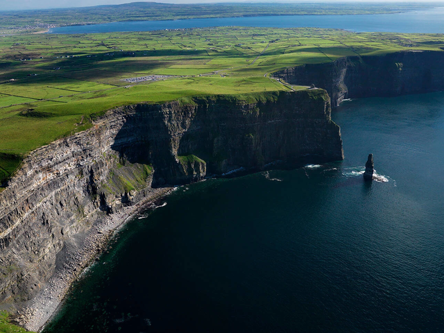 Travel along the coast of County Clare to the spectacular Cliffs of Moher, soaring 700 feet above the churning Atlantic. Drive through the austerely beautiful landscape of the Burren on your way to Galway. Join a local guide in Galway for a walking tour of this thriving historic city; see its charming medieval streetscape, filled with small local shops, cafés, and many street musicians. Return to your hotel for dinner. (B, D)