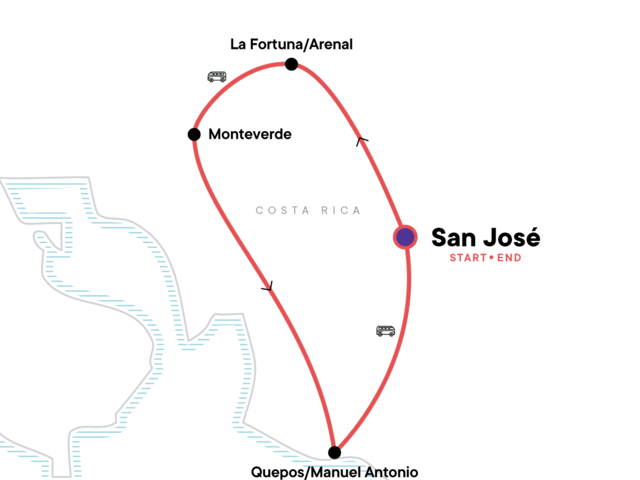 Arrive at any time. Arrival transfer included. Amid the hustle and bustle of this busy capital, San José has beautiful parks, museums and an ornate National Theatre. Start your exploration of the city in the central plaza, a great place to people-watch. A mime, juggler, marimba band, magician, or storyteller may be performing for whatever is collected when the hat is passed. Artisan booths are common, creating a regular arts and crafts fair atmosphere.