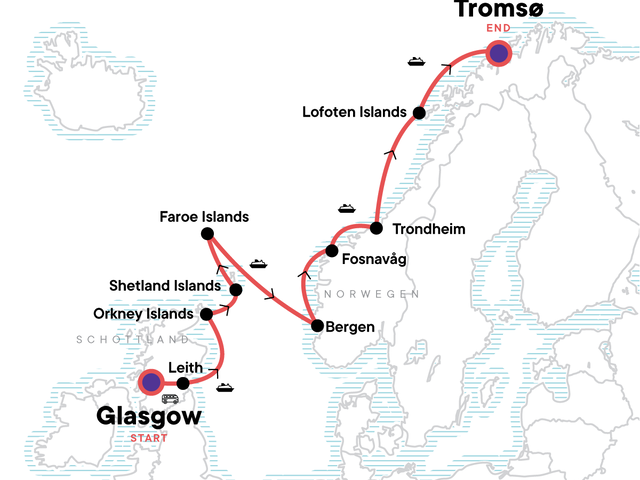 Set sail for a 16-day adventure through the wild and windswept corners of the North Atlantic — from the mystical Scottish Isles to the dramatic Faroe Islands and along the stunning coast of the Norwegian Sea. Follow the ancient paths of the Vikings, get up close to glaciers and fjords, and discover landscapes so surreal they feel otherworldly. Along the way, you’ll explore UNESCO World Heritage Sites, spot wildlife on remote shores, and uncover the deep history woven into every rugged cliff and fishing village. Starting in storied Glasgow and ending in Arctic Tromsø, this is the kind of journey that stays with you long after you’re home.