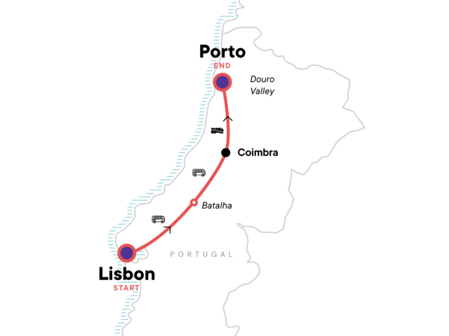 In Portugal, the sun is bright, the food is delicious, and the living is easy. Wander the hilly streets of coastal Lisbon, where you can munch on a custard tart while gazing at sun-dappled architecture. Get your fill of history and culture at UNESCO World Heritage Sites like the Monastery of Batalha, Coimbra University, and the picturesque town of Sintra (optional). End the tour in Porto, where the majestic Douro Valley begs for you to lounge back with a glass of port wine in hand. Felicidades! And welcome to Portugal.