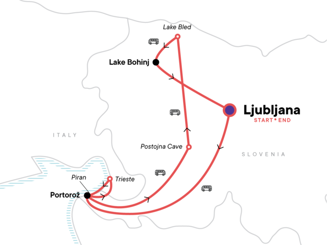 Travel back to Ljubljana in the morning, where the tour ends on arrival at approximately 11am.