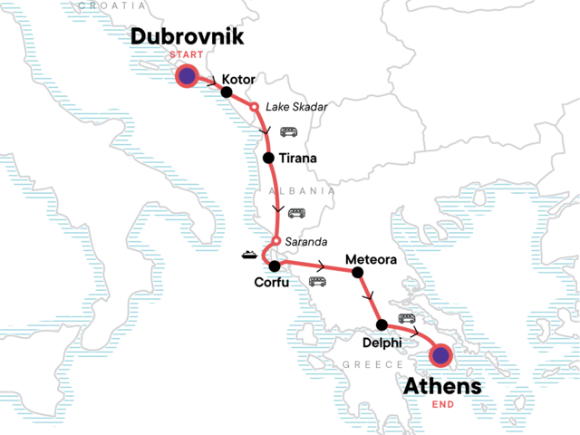 Your Welcome Moment: Meet Your CEO and Group. Scenic drive along Kotor Bay. Walk to Kotor fortress at sunrise. See Skadar Lake. Take advantage of a free day in Corfu. Visit the magnificent Monasteries in Meteora. Experience the Delphi Ancient Ruins with your CEO. Embark on a highlights walk of Athens. Grab a drink at a G Adventures-supported café. Enjoy free time in major cities along the way. All transportation between destinations. 24 hour metro passes in select cities.