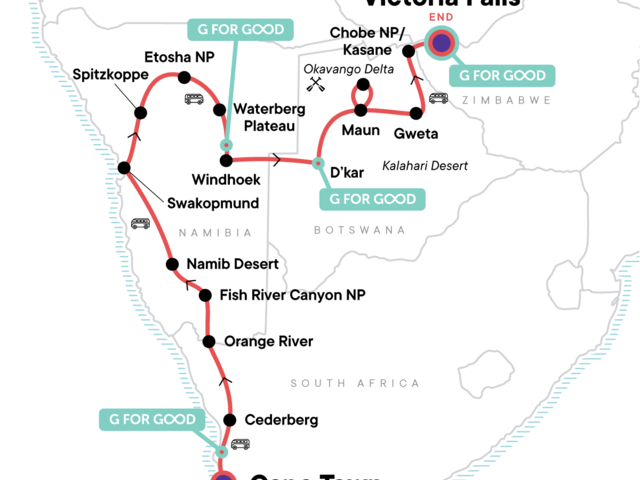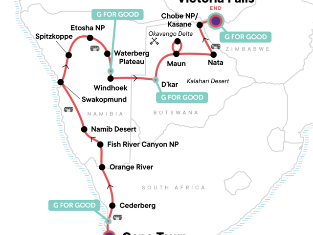 Now's the time to explore Africa on your terms with this tour that's affordable for young travellers. Sand dunes, safari drives, and epic sunrises... all that and we've only scratched the surface on this 21-day tour of southwestern Africa. Visit the thunderous Victoria Falls, explore wildlife-rich deltas, and go camping overnight in the wilderness. Our Landos (overland adventure vehicles) get you close to all the action while local guides and Chief Experience Officers ensure each day goes off without a hitch.